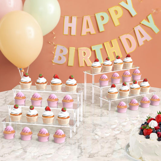 3 Tier Organizer Stand, Clear Cupcake Stand Holder, Large Shelf Risers for Figures, Dessert Shelves for Party, Riser Stand for Decoration and Organizer